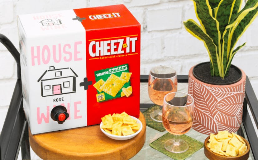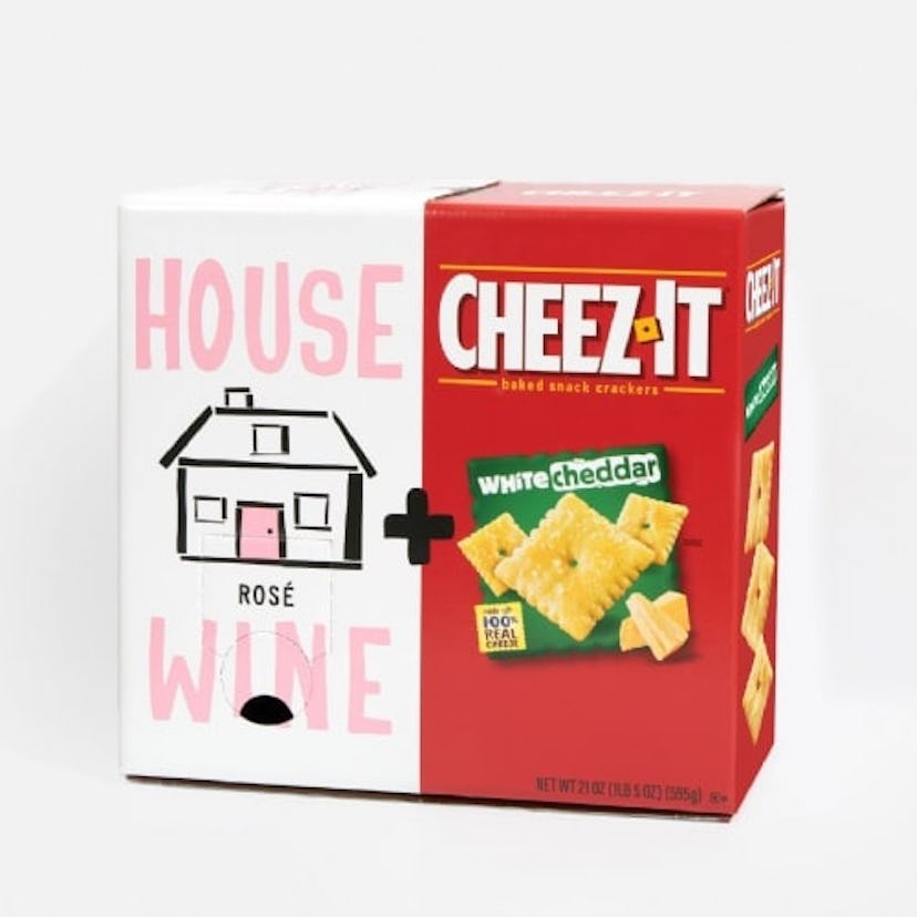 House Wine and Cheez-Its are partnering for a second time to take summer up a notch with a dual pack of White Cheddar Cheez-Its and House Wine Rosé. You may remember the dynamic duo sold a similar pack last year that was part red, part regular Cheddar Cheez-Its but it’s Rosé season now, and its release is just in time to celebrate National Wine and Cheese Day on July 25 (or as some of us like to call it — Tuesday).