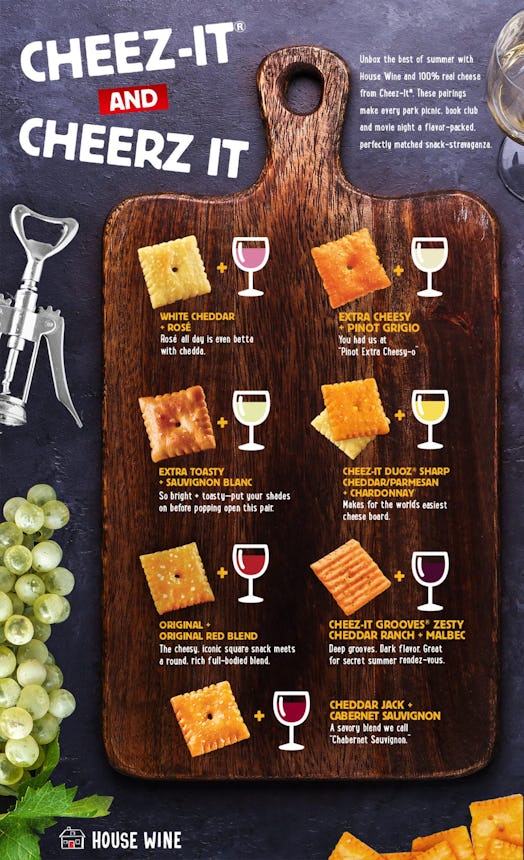 If Rosé isn’t your jam, House Wine also provides a handy guide for all of its wine and the perfect Cheez-It to pair it with.