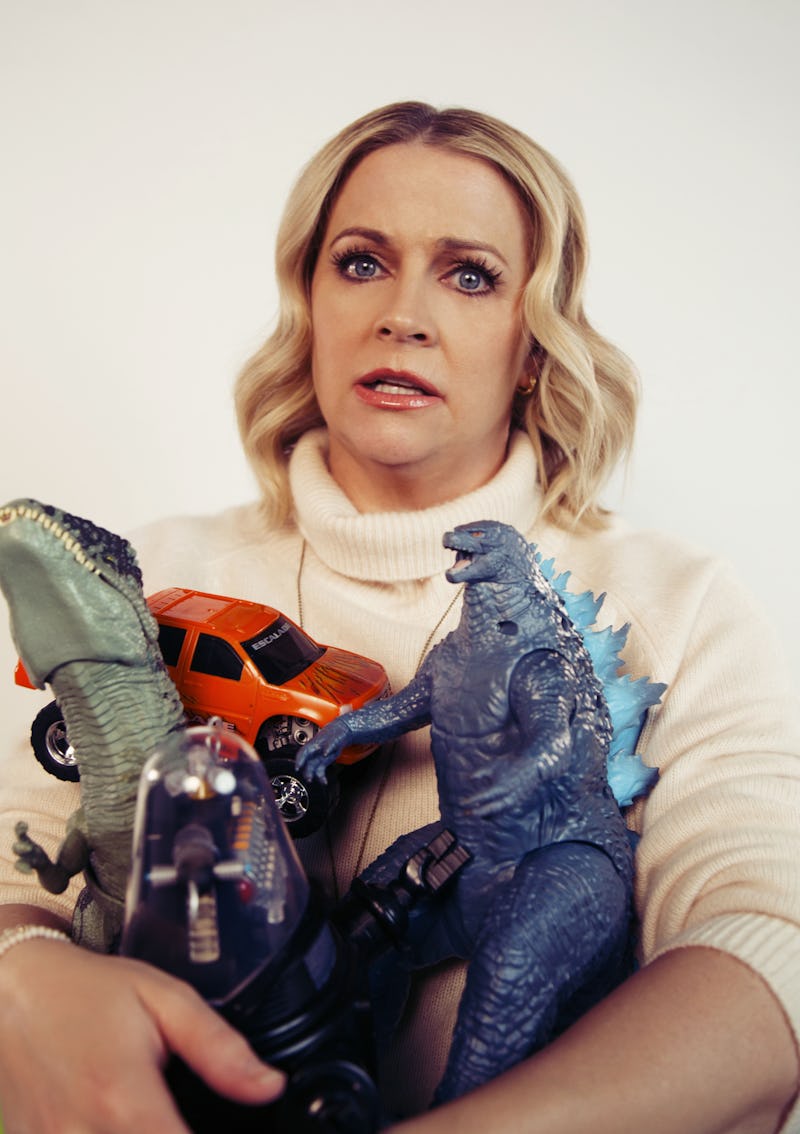 Parenting is hard, right? As moms, aren’t we told… What’s the Barbie quote about doing it all and not doing it well? You have to be perfect, but you’re not perfect. Yet at the same time, we are capable of a lot more than we give ourselves credit for. I think, as mothers, as women, we push ourselves in a lot of ways that people don’t see. On set, if anyone’s ever like “Do you need a coat? Are you cold?” I’m like, “I’m fine. I had three babies.”